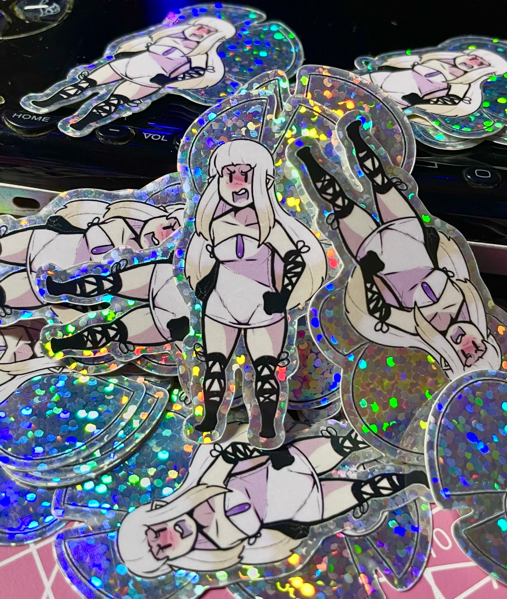 ----- -2x2" glitter holographic stickers -Die-cut -Durable, waterproof vinyl -Can be applied to most smooth surfaces
